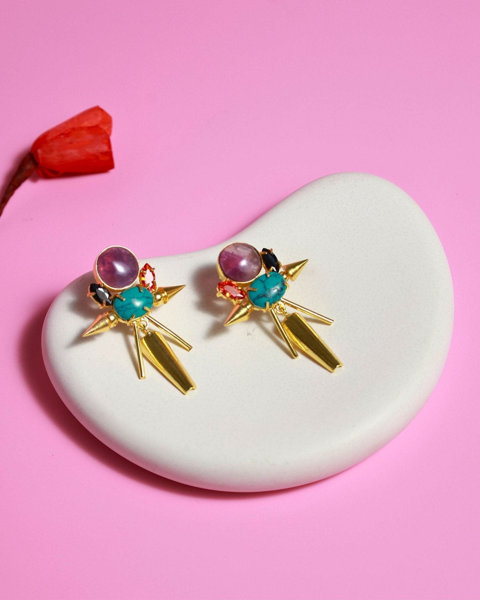 Kimikii Jewelry features elegant pieces crafted from a variety of materials such as crystals, Swarovski elements, zirconia, and semi-precious stones. To ensure longevity, handle each piece with care. Avoid contact with water, perfumes, lotions, and chemicals as they can tarnish the metals or degrade the crystals.