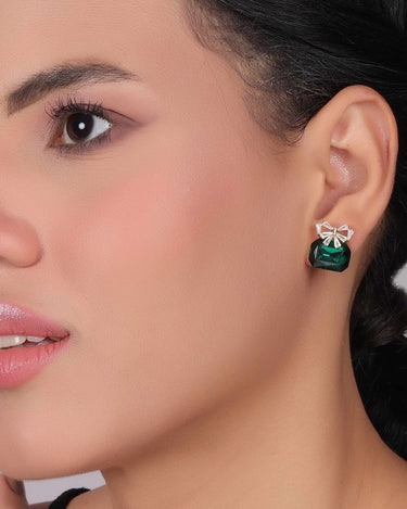 - Exquisite Design: Each earring features a delicate bowtie silhouette adorned with radiant emerald crystals, offering a unique twist on classic elegance.