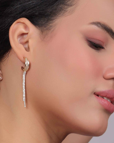 Transform your accessory collection with the Gold Plated Half Droplet AD Tassel Earrings and enjoy an effortlessly chic style that is sure to turn heads!