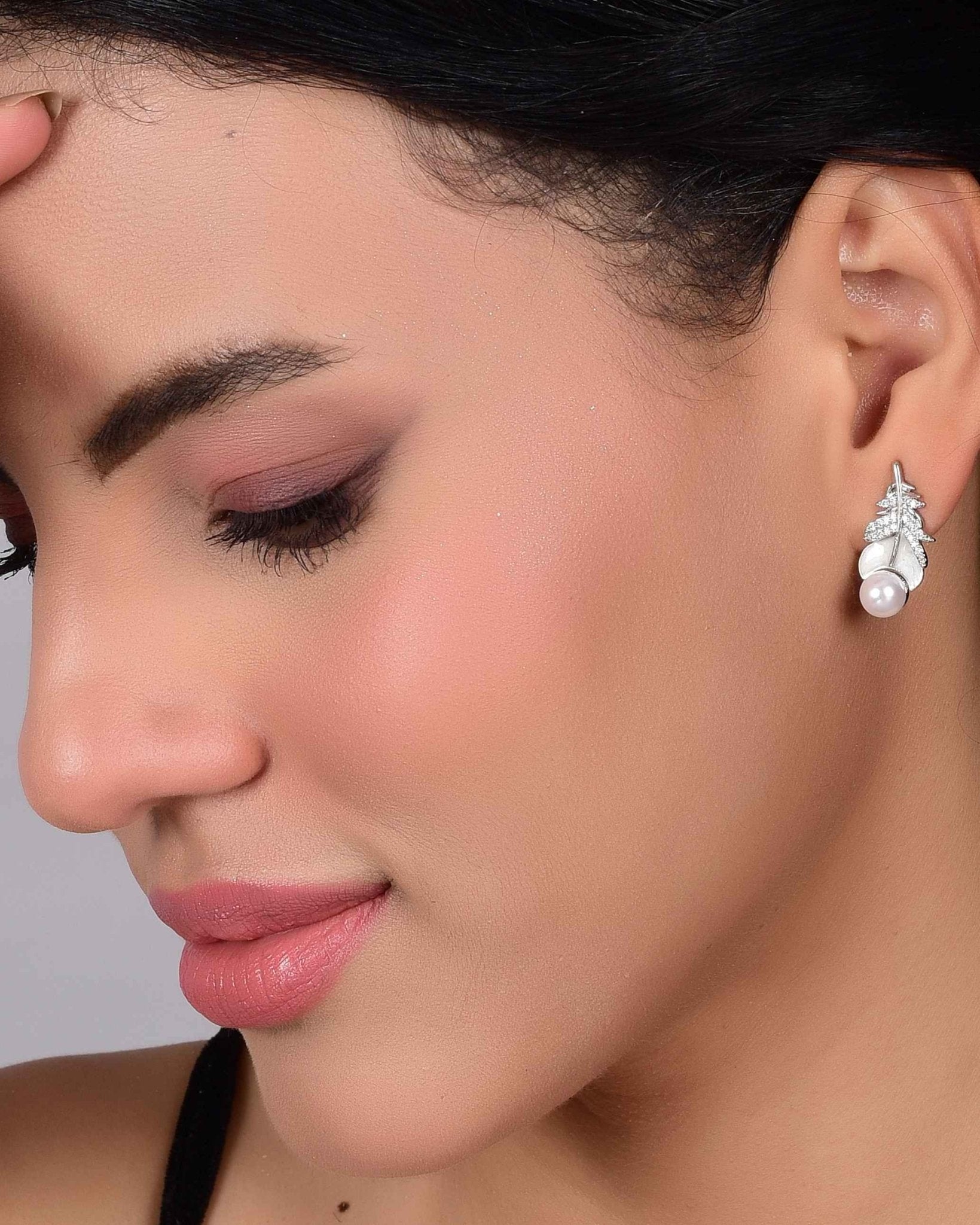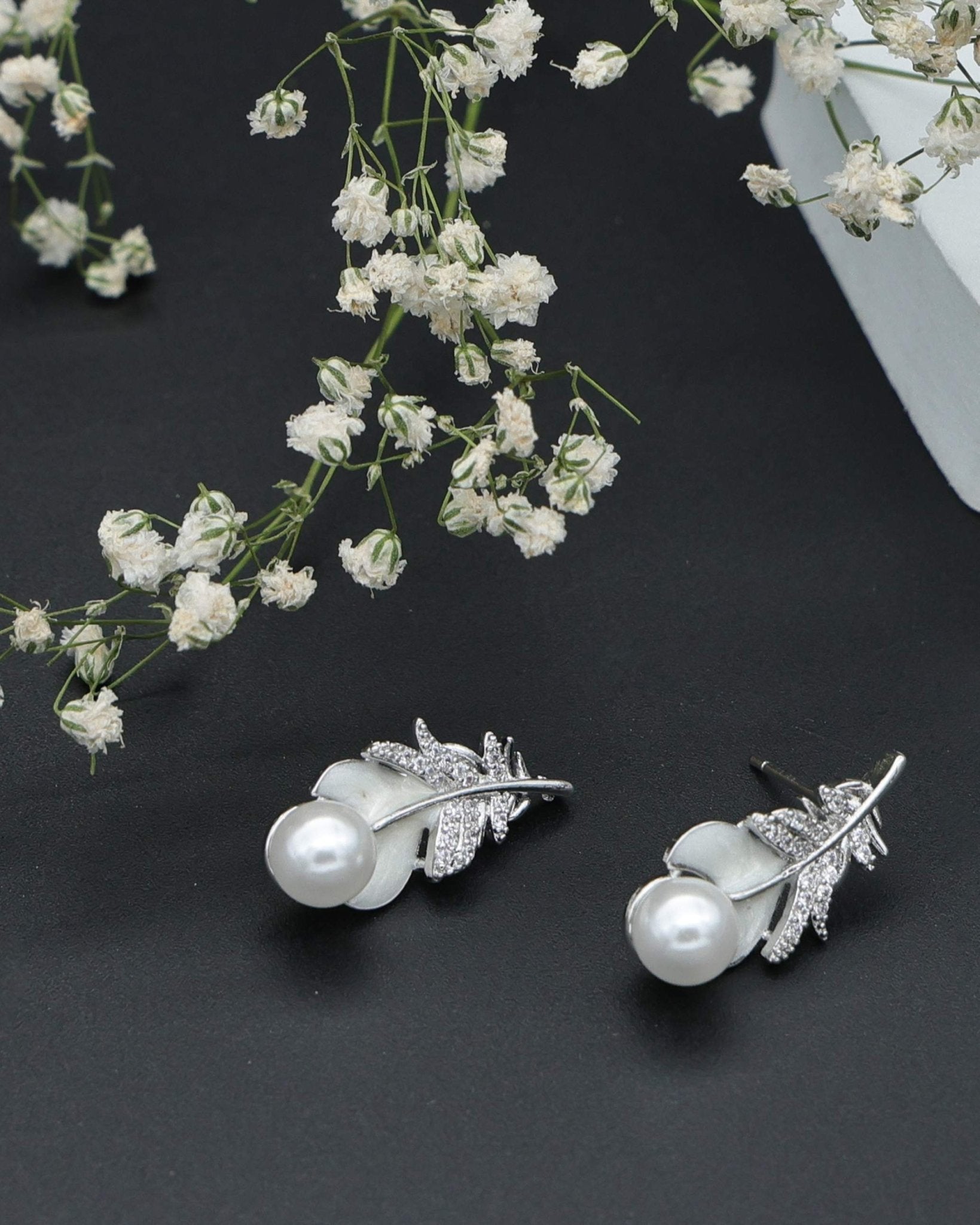 Ad Studded Silver Leaf Pearl earrings - Kimikii Jewellery Ad Studded Silver Leaf Pearl earrings - Kimikii Jewellery