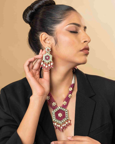 Kundan Kanchan Necklace Set- With Magenta Hues