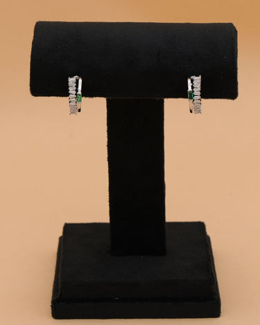 Elevate Your Elegance with Emerald Edge Crystal Silver Hoop Earrings