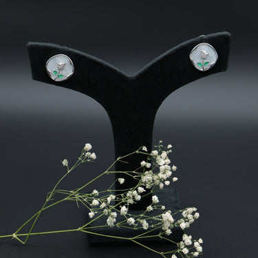Rhodium Plated AD Studded Rosebud Earrings - Kimikii Jewellery