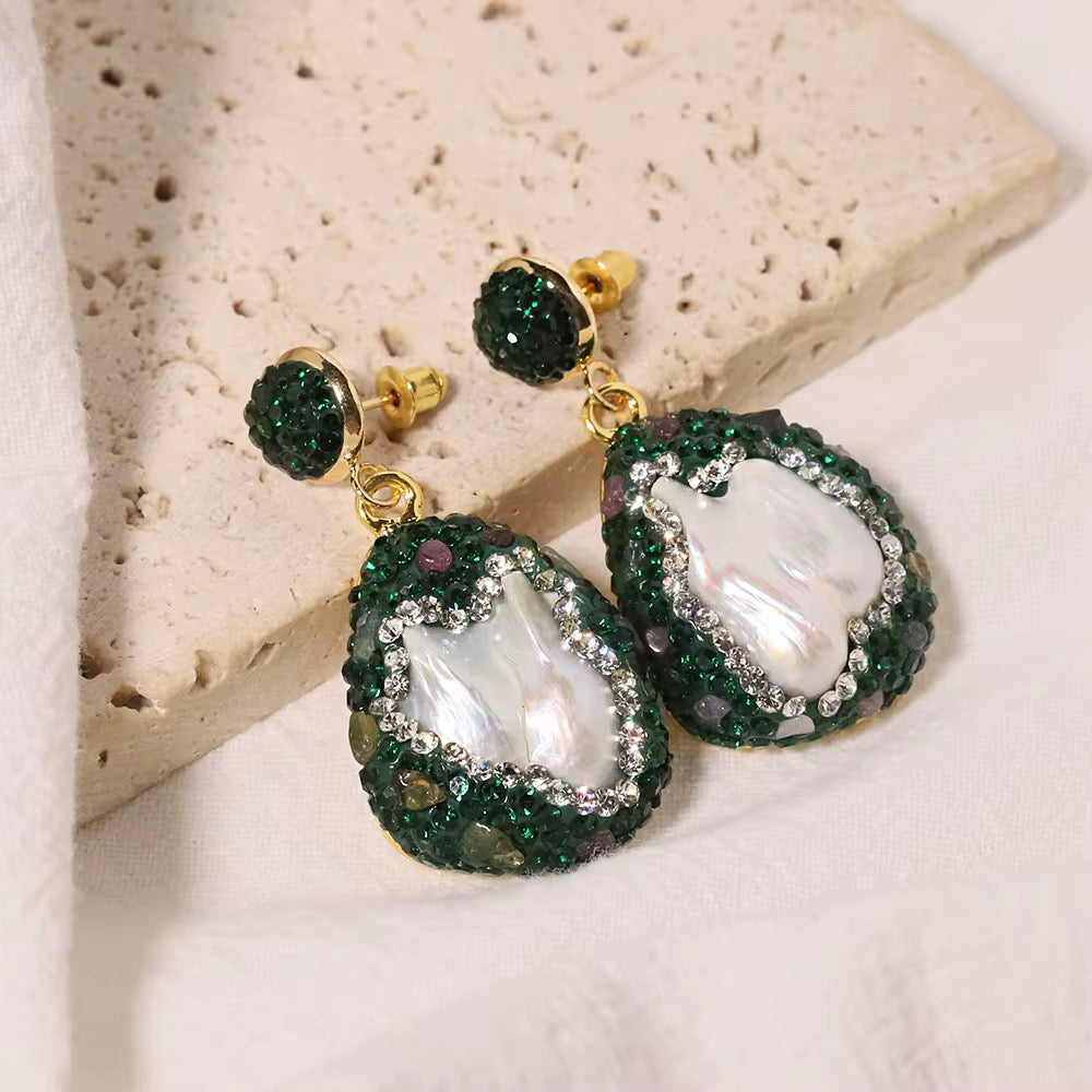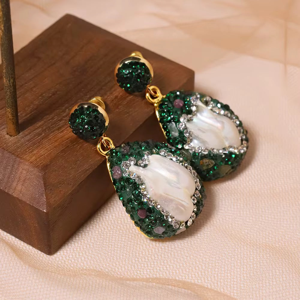 Emerald pearl drop earrings