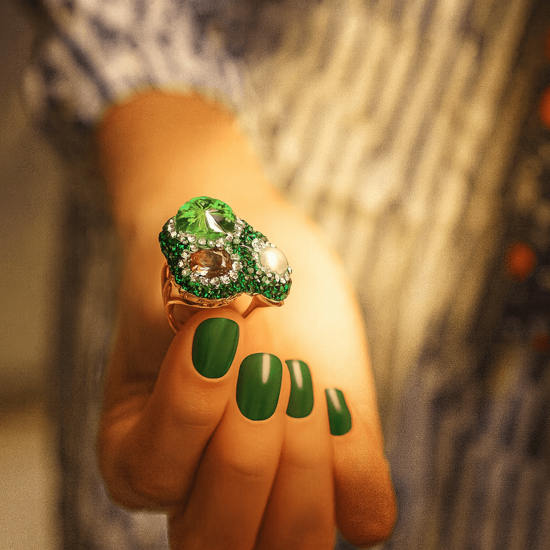 Statement necklaces and rings with large crystals or intricate designs are more delicate. Handle these pieces with extra caution to avoid loosening stones or damaging the settings.