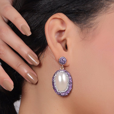 Oval Amethyst Pearl Drop Earrings