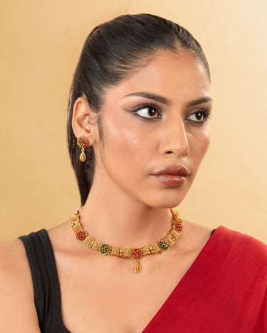 Rajputi Poshak Necklace Set - With Green and Red Beads - Kimikii Jewellery Rajputi Poshak Necklace Set - With Green and Red Beads - Kimikii Jewellery