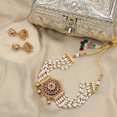 Rukmani Jadau Temple Jewellery Choker Set