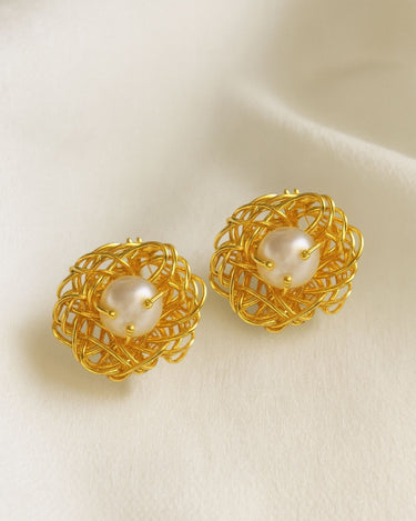 Ornate Gold Wire Pearl Studs - Kimikii Jewellery Ornate Gold Wire Pearl Studs - Kimikii Jewellery