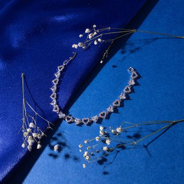 Kimikii Jewelry features elegant pieces crafted from a variety of materials such as crystals, Swarovski elements, zirconia, and semi-precious stones. To ensure longevity, handle each piece with care. Avoid contact with water, perfumes, lotions, and chemicals as they can tarnish the metals or degrade the crystals.