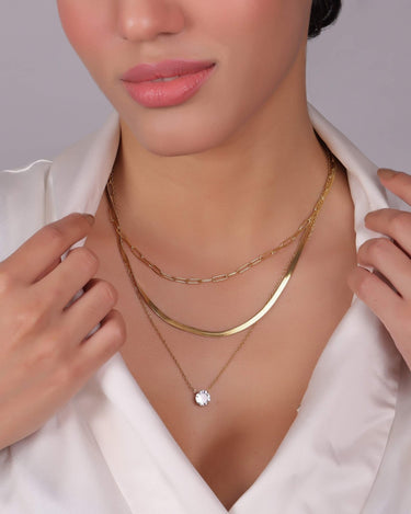 This triple layered gold chain is not just about aesthetics; it's about the emotions it evokes. Whether you're looking to treat yourself or searching for the ideal gift for a loved one, this necklace is sure to impress. The solitaire diamond pendant serves as a timeless reminder of cherished moments, while the gold chain adds a touch of modern elegance.