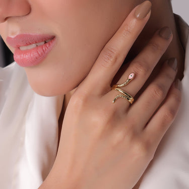 Golden Minimalist Pink Serpent Ring - Kimikii Jewellery Golden Minimalist Pink Serpent Ring - Kimikii Jewellery