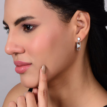 Discover Elegance with Rhodium Plated Zirconia Geometric Minimalist Earrings